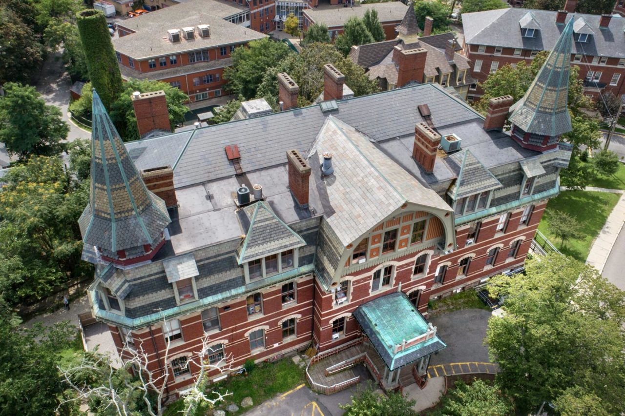 Most recently, Timberline was brought on to complete the exterior renovation and restoration of the historic Zakrzewska Building, known as the Z building. Originally constructed in 1862, the building was in need of a major overhaul including repairs to the slate roof, masonry, chimneys, restoration of the original fire escape, and extensive rough and finish carpentry. One of the major challenges was addressing the structural separation of the building, which required the installation of steel rods throughout the structure to stabilize the mansard and spires. Despite challenges due to the building’s age and rigorous historical standards, Timberline successfully completed another project at The Dimock Center’s Roxbury Campus. Prior to the exterior renovations of the Z Building, our team renovated two floors to house a temporary Acute Treatment Center before undertaking the gut renovation of the Sewall Building across the street. The work included reconfiguration of the existing space, comprehensive upgrades to electrical and plumbing systems and installation of a new HVAC system.