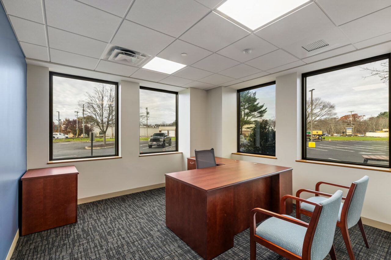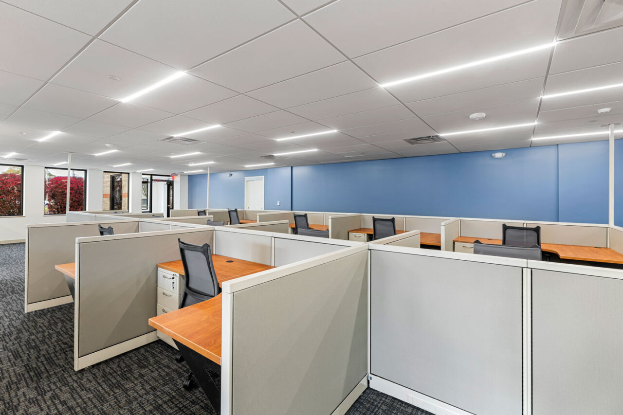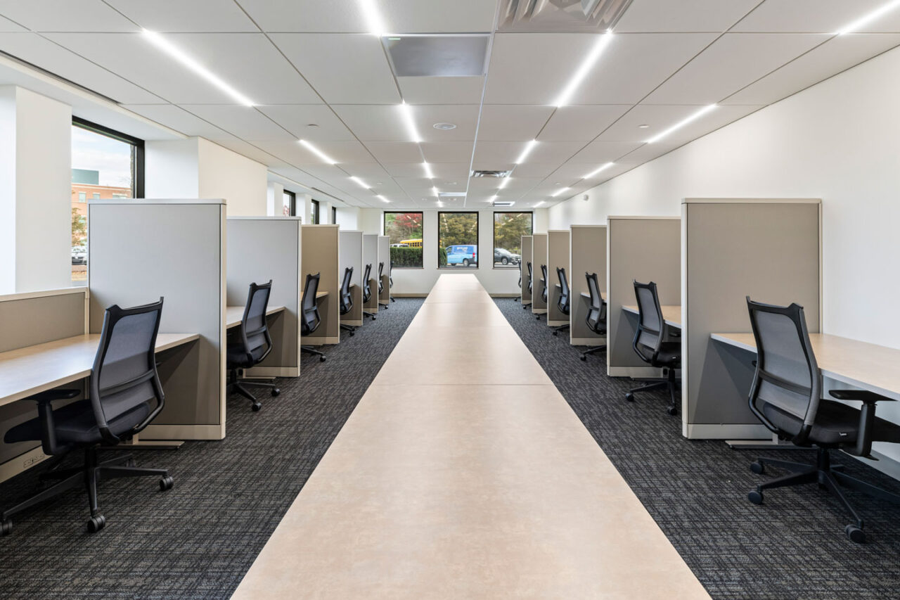 The renovated training center includes a mix of large training rooms, expansive conference spaces, smaller meeting rooms, open office areas, private offices and essential support spaces. Upgraded bathrooms, break rooms and a refreshed kitchenette with new kitchen and seating areas create a welcoming hub for staff throughout the day.